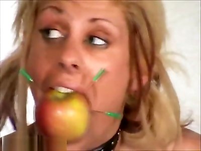 Jap Plus-size marionette got needles pierced lip to keep her facehole shut
