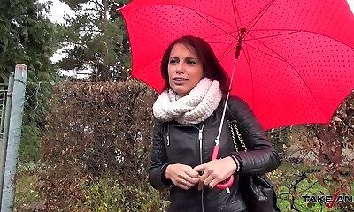 Sweet picked up teen Vanessa Decker gives blowjob to one strange drive before having kinky hookup