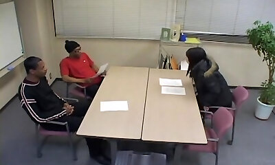Japanese floozy in a hot threesome action with Two black dudes