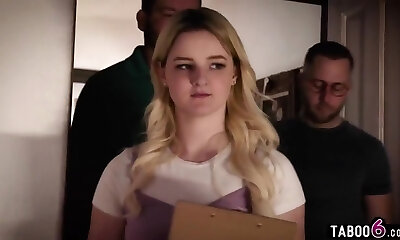 Petite blonde drill doll, Rebecca Sharon got down and dirty with three naughty black guys