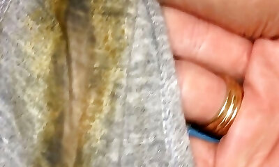 Chunky white young female in cock-squeezing leggings pisses in the toilet