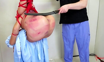 Horny red-haired has her large booty punished in a pretty painful way
