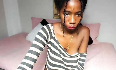 dünnes lockiges ebenholzbaby mit kleinen titten saugt und reitet beim casting gekonnt kräftigen bwc