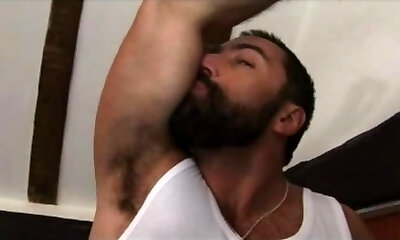 Mature bearded hairy man straight amateur masturbating