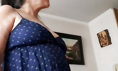 preggo mILF with a very hairy beaver, fucking with a dildo in the kitchen