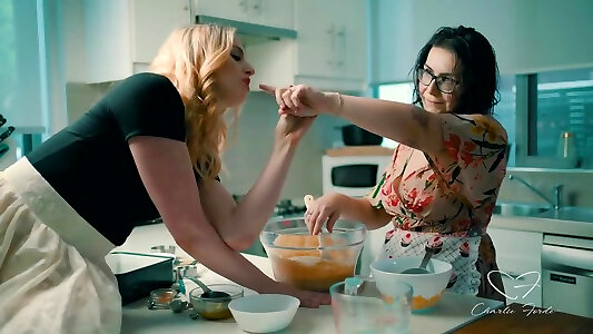 толстушки печет яблочный пирог, а затем..сюрприз ! двое