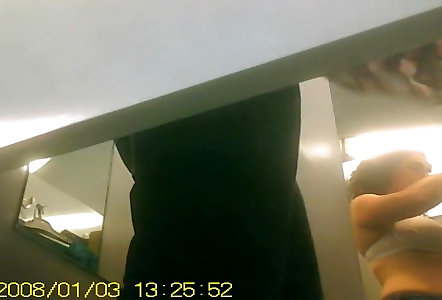 обнажая нижнюю половину своего тела в примерочной! продавщица в магазине тканей в узком пространстве -2