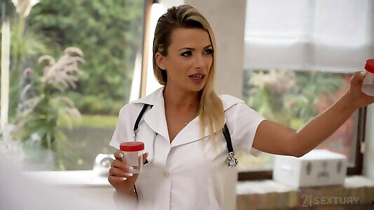 горячая грудастая блондинка-медсестра банка спермы позволяет донорам трахать ее в 3 приема и дп в ее дырочки, чтобы помочь им кончить