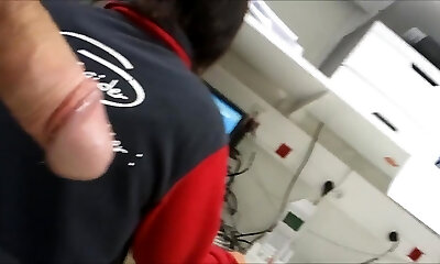 смешанное приключение в туалете: демонстрация члена и эксгибиционизм для двух шлюх в туалете у бассейна