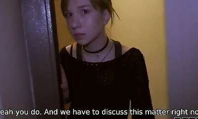 Sliczna malolatka w kreconych wlosach jest ostro posuwana przez swojego nowego sasiada