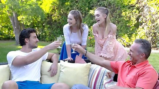 老年夫妇说服一个年轻的黑发与他们戳