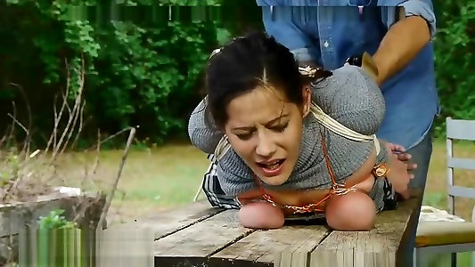 处女少女在严格的字符串束缚。 虐待狂和受虐狂的电影。Xxx束缚他妈的巨星。