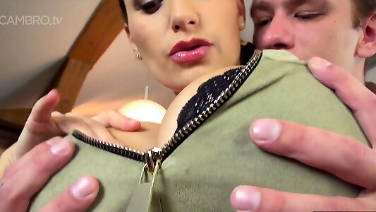 胖乎乎的黑发亲爱的与大的自然奶获取dicked