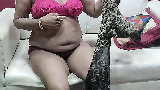 可行的印度阿姨Rupashree在深红色纱丽外面