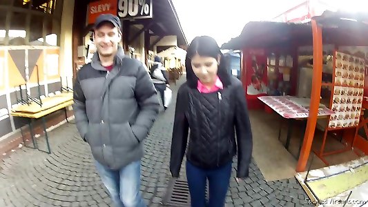 诱人的害羞黑发Izi阿什利挂钩与陌生人在第一个幽会